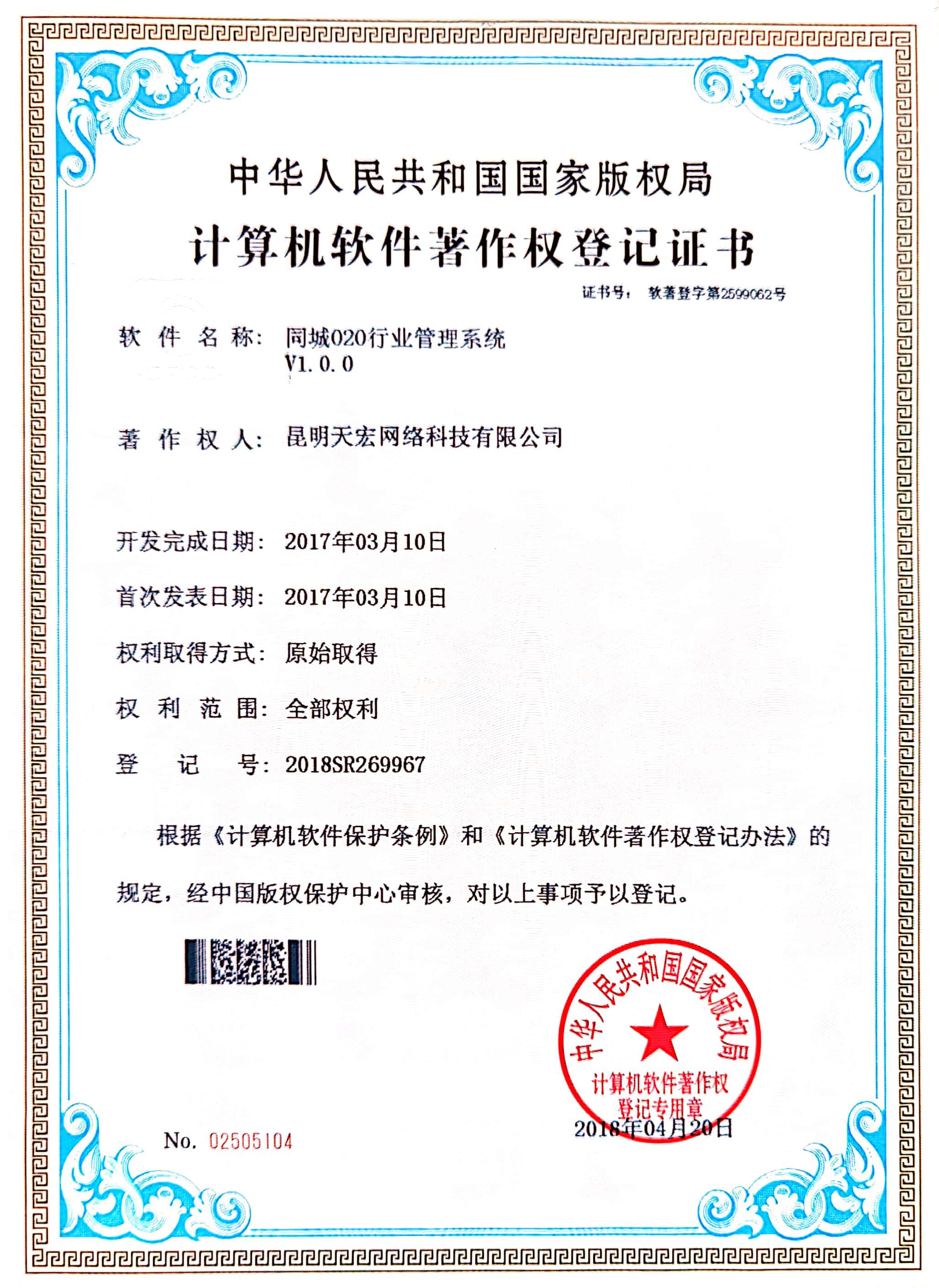天宏網(wǎng)絡(luò)通過不斷的研發(fā)創(chuàng)新,現(xiàn)擁有50多項計算機軟著證書,包括多商家點餐系統(tǒng)、門店收銀管理系統(tǒng)、通用OA協(xié)同辦公管理系統(tǒng)、智慧商圈運營管理平臺、天宏健康智慧+系統(tǒng)、同城O2O管理系統(tǒng)等。